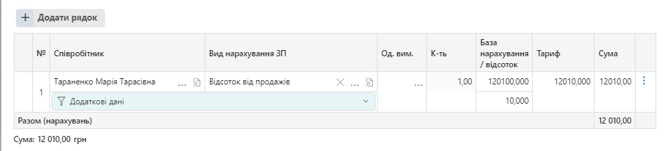 Тепер можна створювати документи нарахування з використанням відсотків від діяльності цього співробітника.