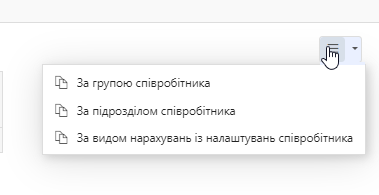 Якщо обрати "За видом нарахувань", то відкривається список статей нарахування ЗП.