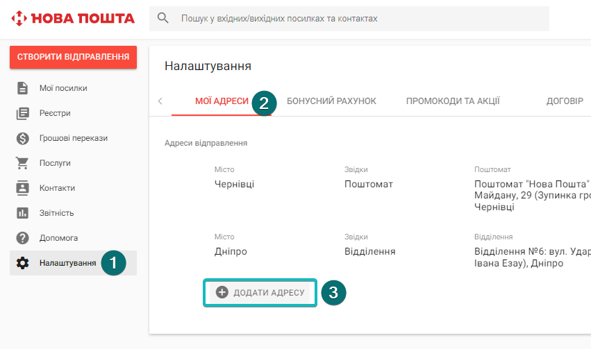 | Важливо! Для створення профілю треба перевірити основну адресу у кабінеті НП, звідки відбувається відправка посилок. Або створити нову актуальну адресу перед тим, як налаштовувати інтеграцію.