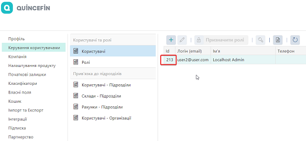 Ідентифікатор користувача (User ID) можна побачити у списку користувачів:
