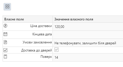 А у документах Замовлення, Продаж, Замовлення постачальнику, Надходження - на вкладці Власні поля.
