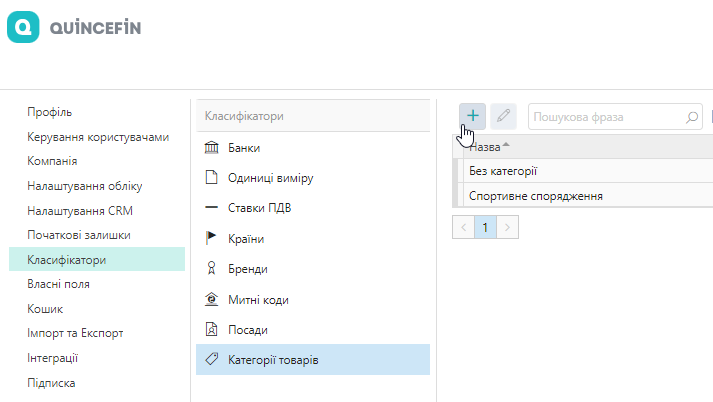 Список категорій знаходиться у розділі Налаштування/Класифікатори